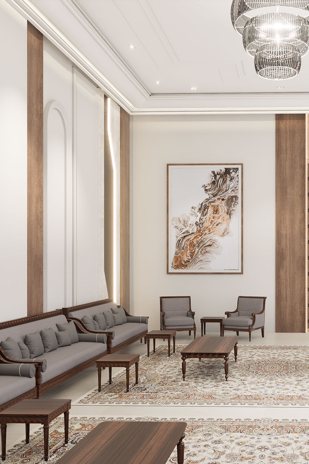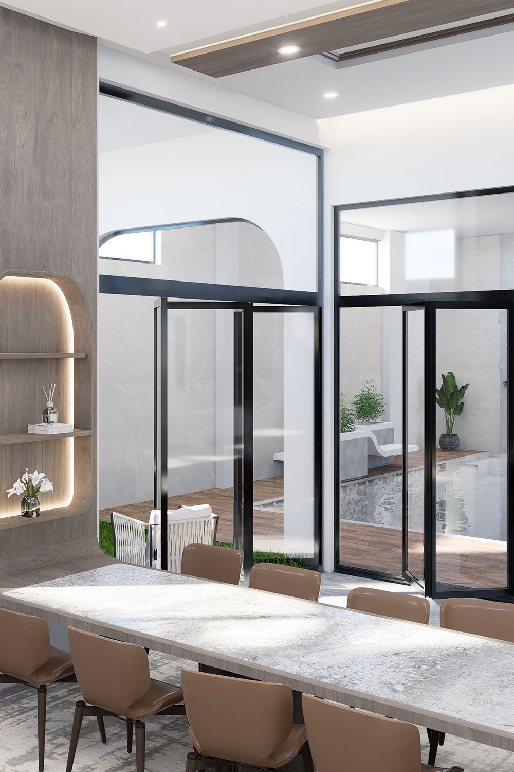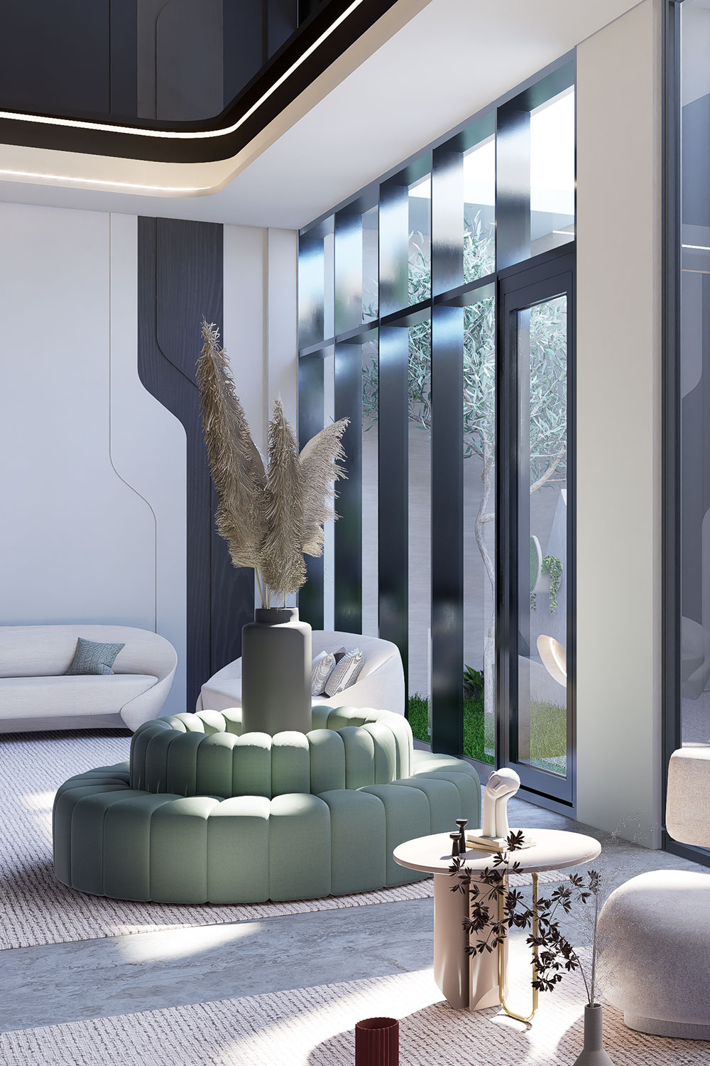 يهدف المشروع إلى صنع منزل يدمج الميزات الطبيعية في تصميمه الداخلي، مثل ضوء النهار النباتات والمياه، مع استخدام المواد الطبيعية أيضًا. بالإضافة الى انعكاس الفخامة الحديثة في مناطق الجلوس والديوانية.