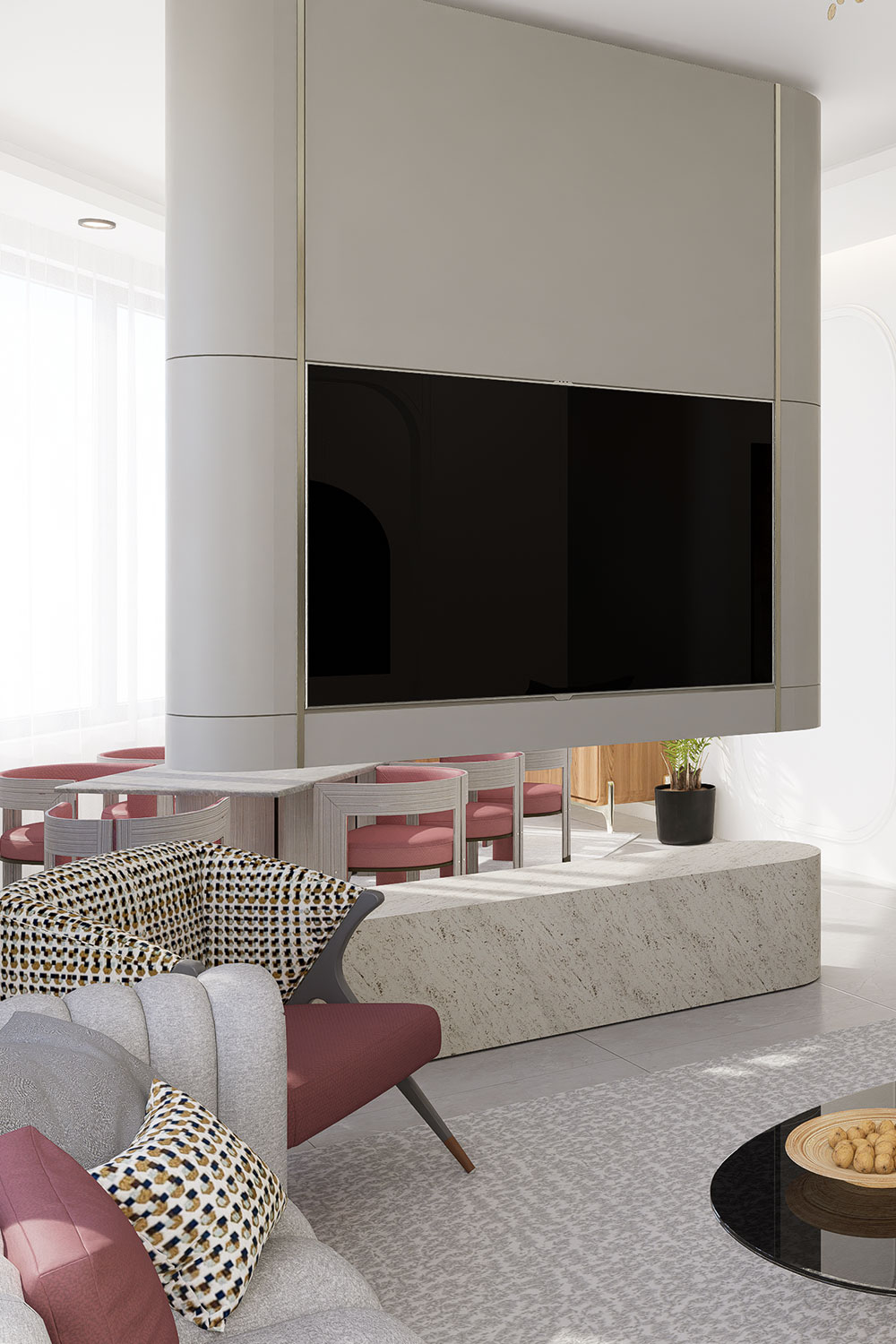 يتكون المشروع من معيشة وغرفة نوم ، ويهدف المشروع إلى إنشاء مساحات مفتوحة ذات أجواء متشابهة مع بعضها البعض و متجانسة مع المواد والالوان.