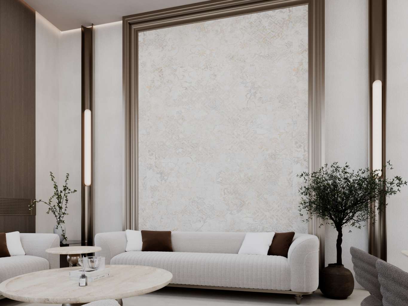 This project’s objective is to combine elegant gold touches with simple wood paneling, highlighted by a special piece of marble that beautifully blends the mix of colors. The aim was to create harmony between materials while maintaining a refined and balanced aesthetic.