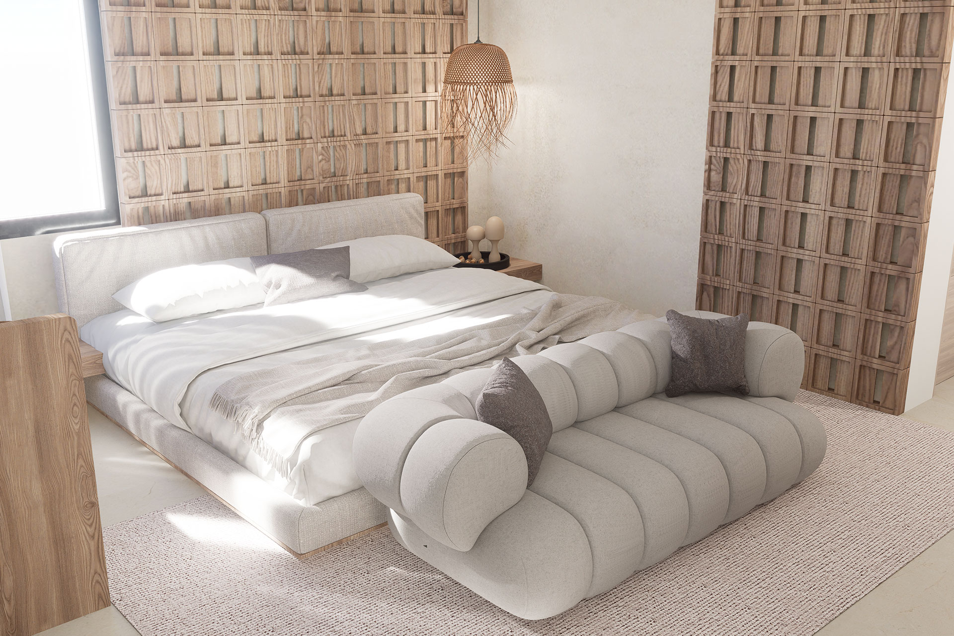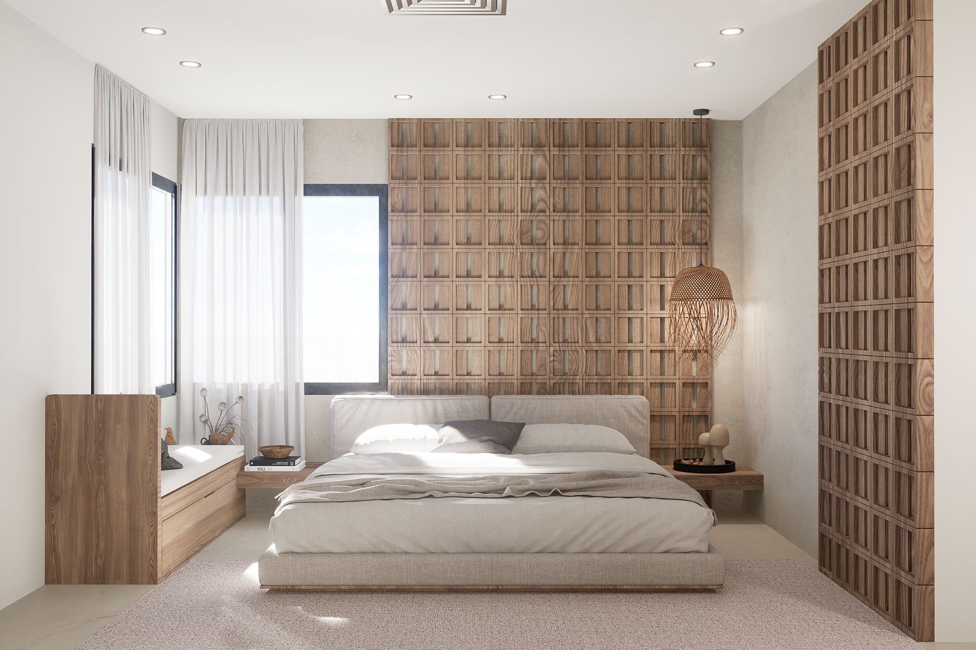 The project's goal is to create a house full of organic shapes drawn inspiration from nature and natural wood materials.