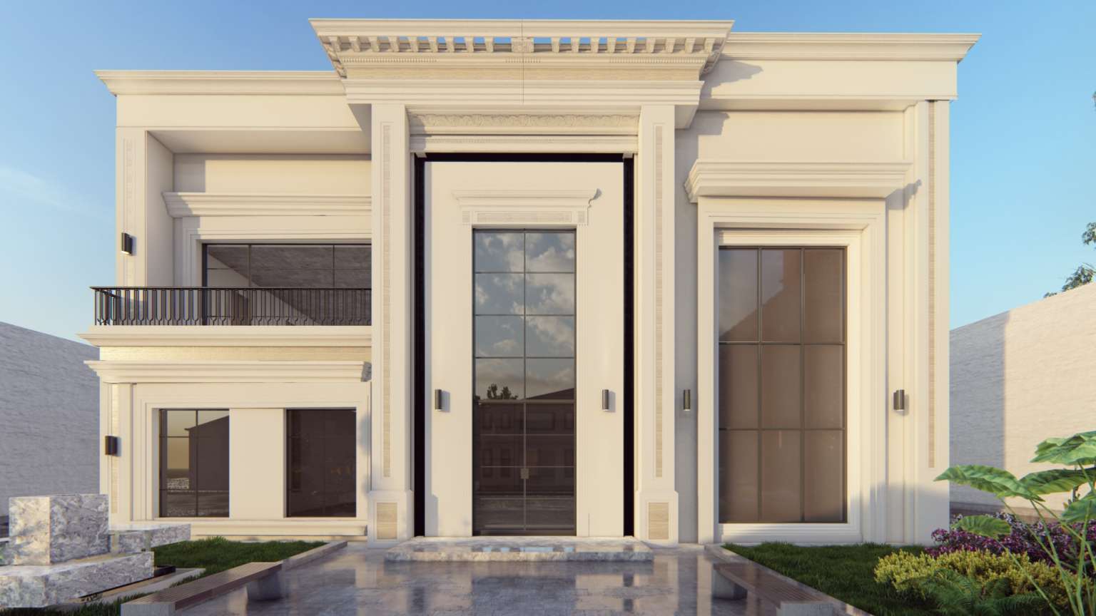 The project is designed to harmoniously blend modern aesthetics with classic architectural lines, creating a space that feels both timeless and contemporary. White stone is prominently used throughout the design, adding a sense of simplicity, purity, and understated luxury to every detail.